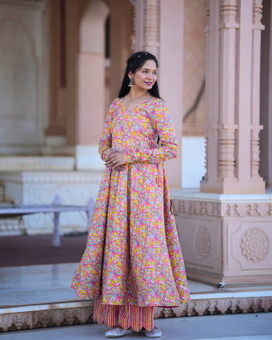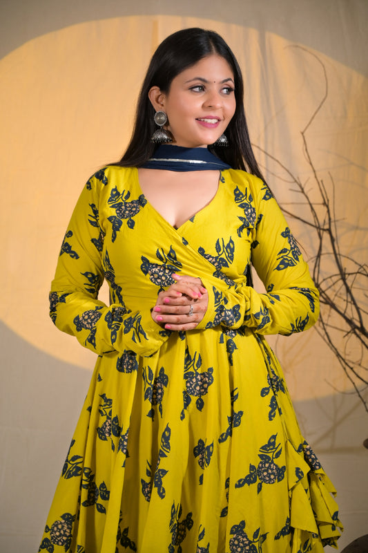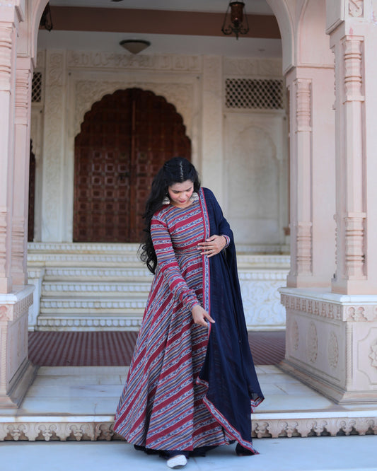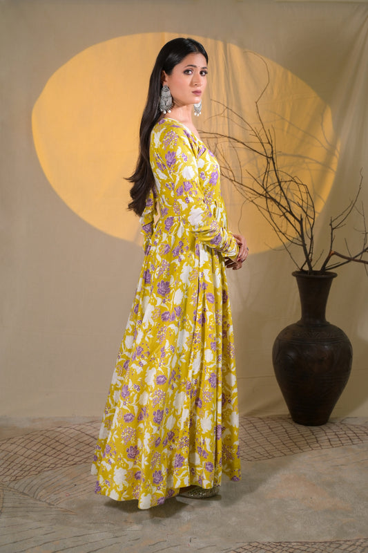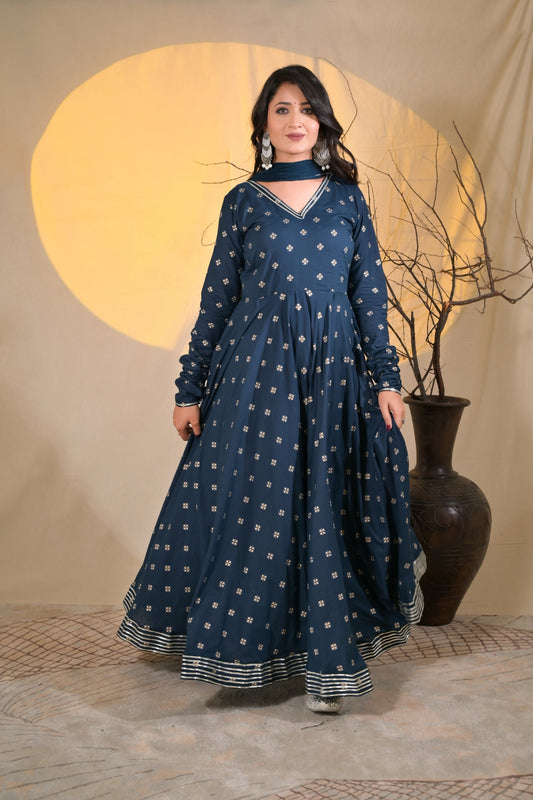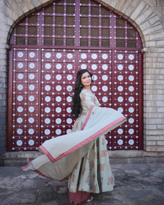 LADY DABU INDIGO HANDBLOCKED ANARKALI SUIT SET