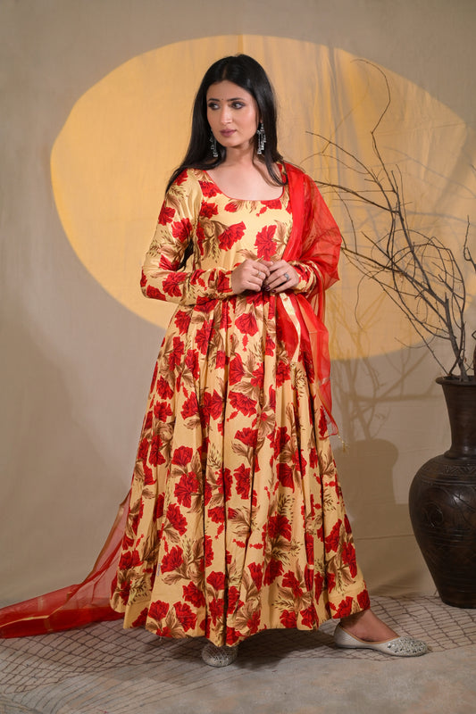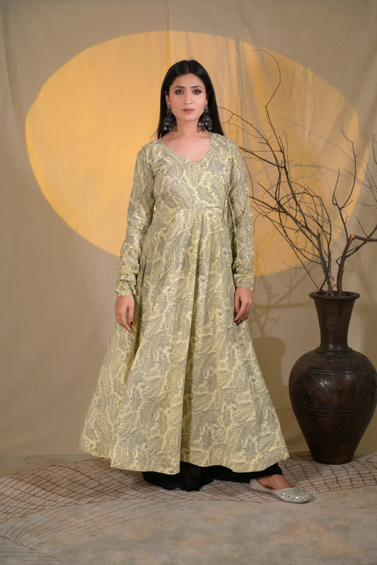 YELLOWBROWN SLUB ANARKALI SUIT SET