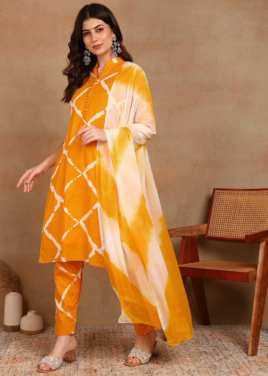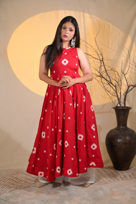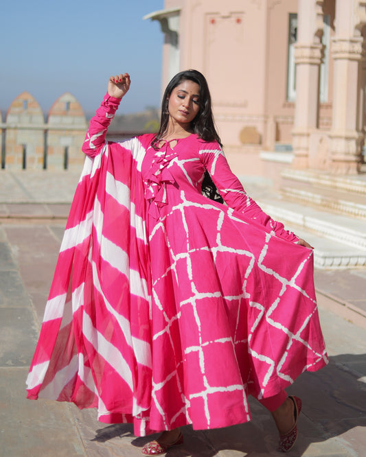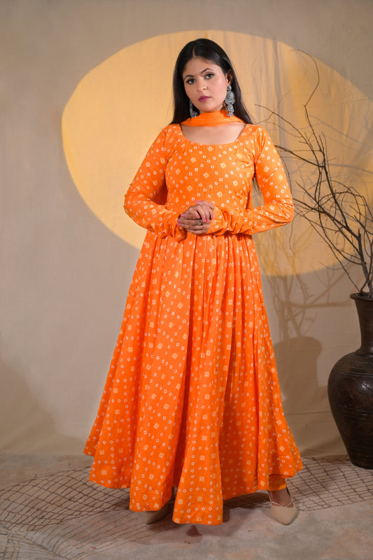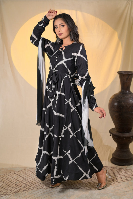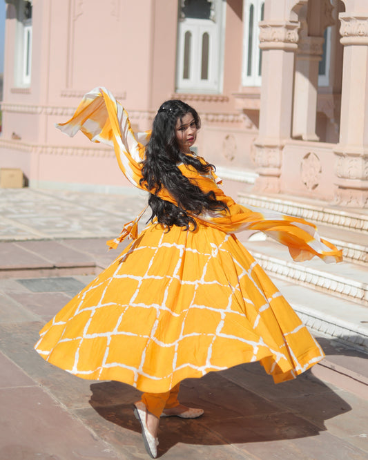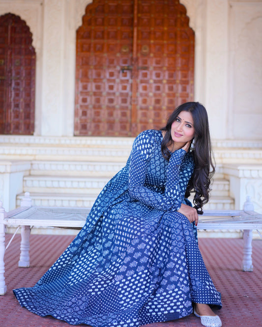 HANDMADE BHANDHEJ DABU INDIGO ANARKALI KURTA SUIT SET