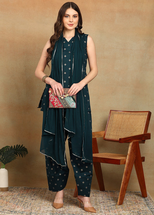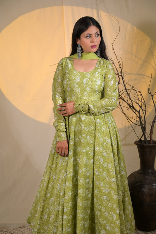 Sold outGREEN HANDPAINTED FLORAL SUIT SET