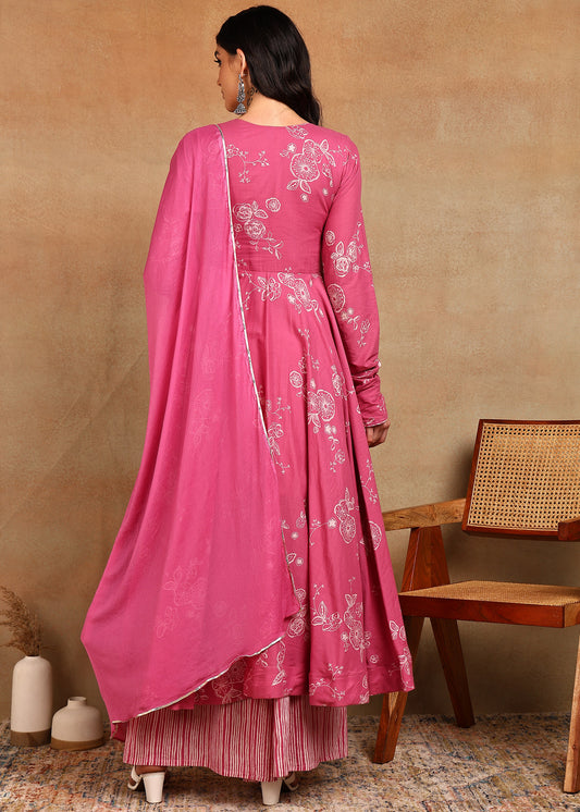 Sold outDABU PINK HANDPRINTED SUIT SET