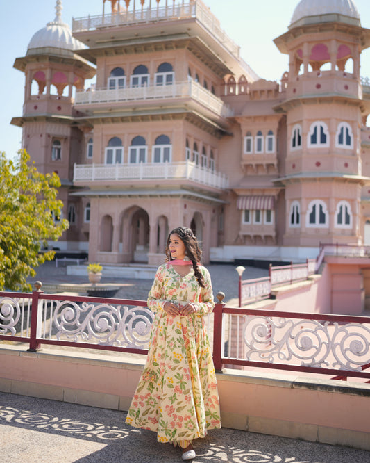 Sold outLIME PINK SLUB ANARKALI SUIT SET