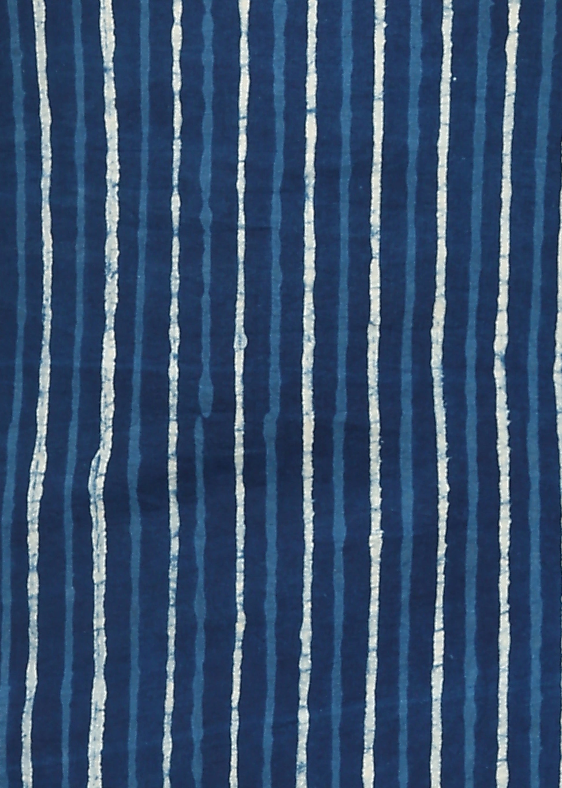Crafted using the traditional Dabu hand block printing technique, the indigo-striped kurta features delicate spaghetti straps and side slits for ease and movement. It is paired with soft, flowy white palazzos that create a balanced, contemporary silhouette.