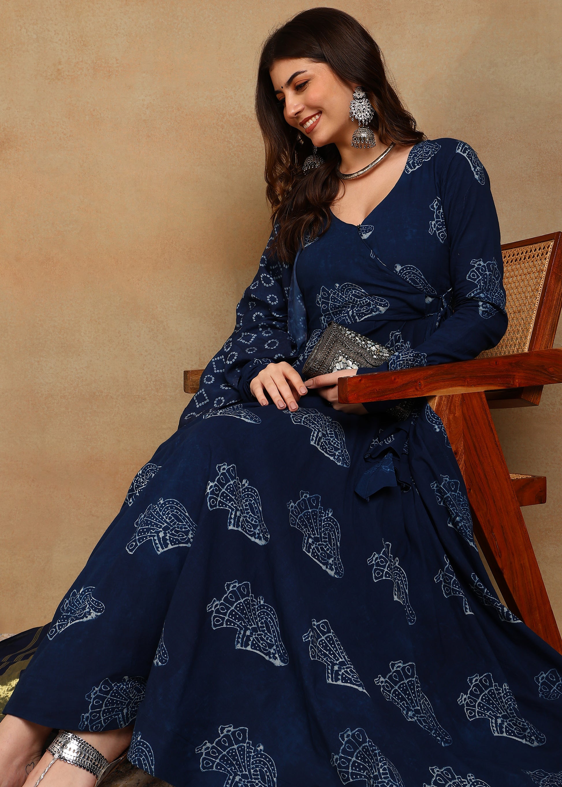 LADY DABU INDIGO HANDBLOCKED ANARKALI SUIT SET