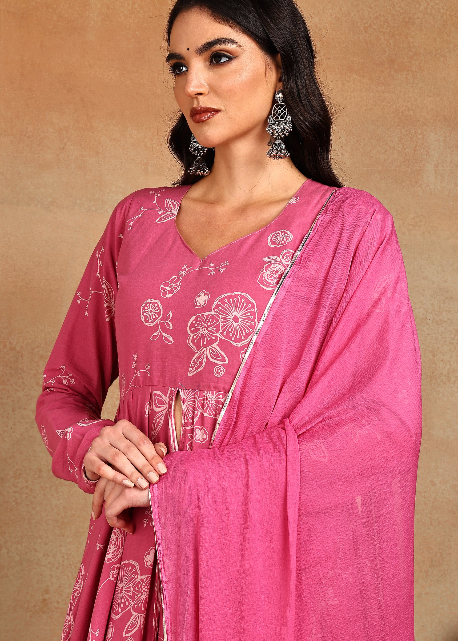 PINK FRONT CUT ANARKALI SUIT SET
